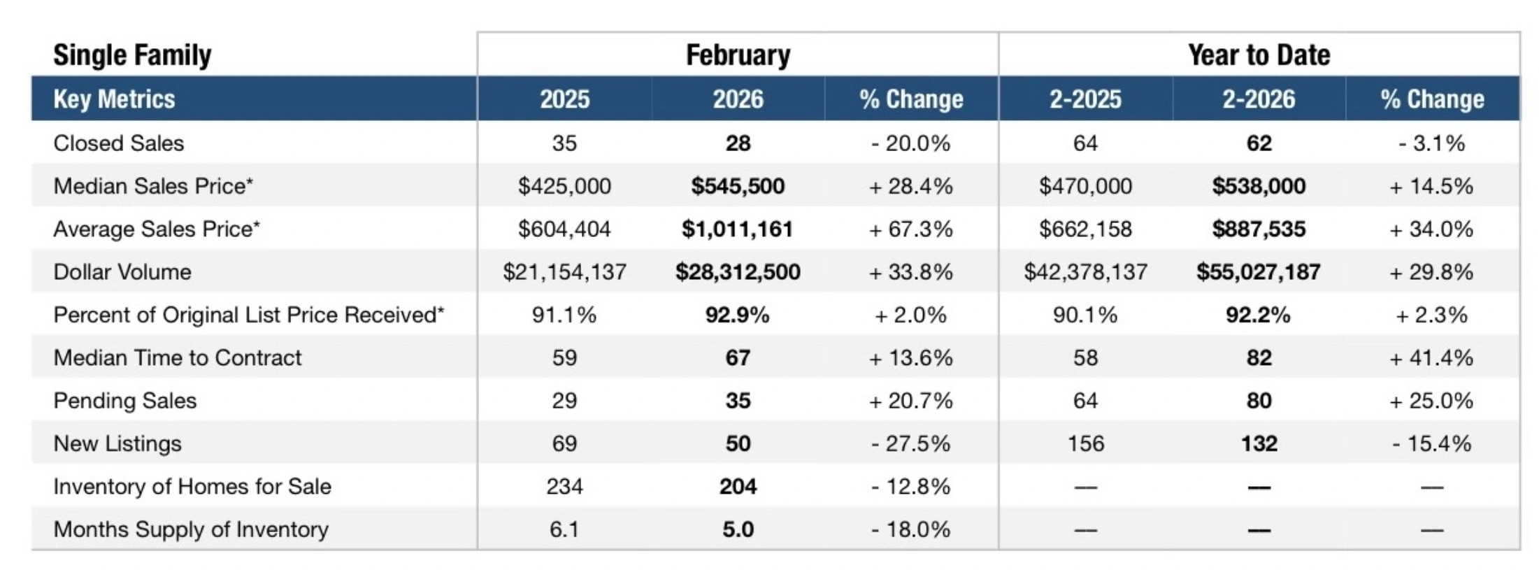 Key February 2026 Highlights (Single Family)